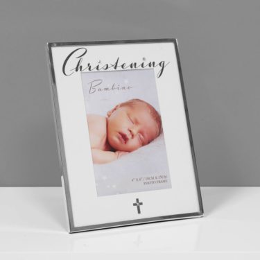 A beautiful silver plated 4″ x 6″ (10x15cm) photo frame from BAMBINO BY JULIANA®. Featuring crisp white mount, mirror ‘Christening’ titling on the glass and crystal embellished crucifix icon. Complete with luxury black velveteen standing strut. From the very first breath there are so many milestones to remember. This range of keepsakes is designed for you to store every one of them for generations to come. Designed to stand the test of time, BAMBINO BY JULIANA® was created to provide a brand to be there from the very beginning. From baby showers and scans to first birthdays, BAMBINO BY JULIANA® has the perfect range for every occasion. Premium finishes including silver plating and crystal embellishments ensure we stay on trend. creating a contemporary and stylish finish. With attractive packaging, BAMBINO BY JULIANA® offers the perfect collection of truly thoughtful giftware for any special occasion with unbeatable value for money.
