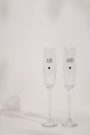 A beautiful set of Wedding Day glass champagne flutes, feature silver hot foil lettering which reads: ‘Mr’ & ‘Mrs’.  complemented with the heart symbol. Comes packaged in a window box/white sleeve.